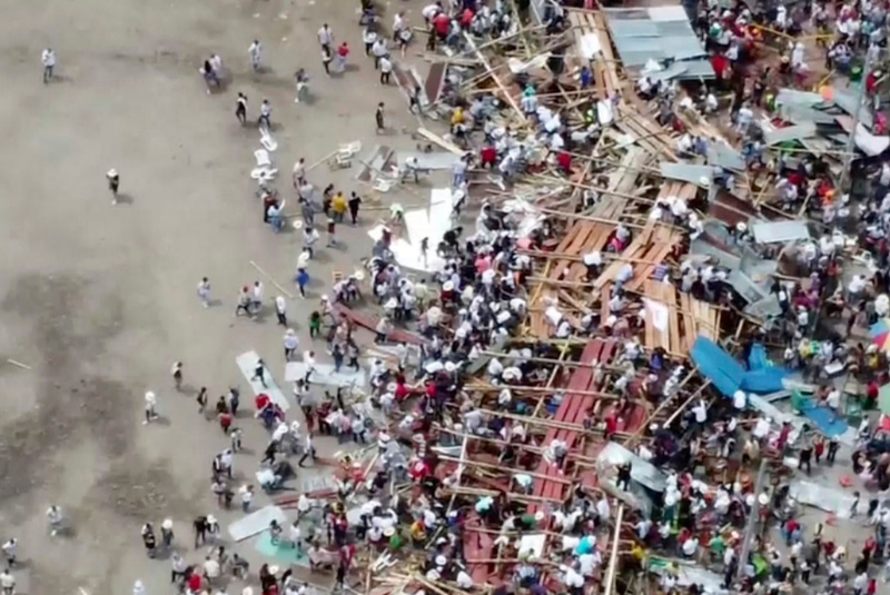 “Estamos pendientes de cuántas personas están debajo de los escombros, no sabemos cuántas. Como se ve en los videos estaba casi toda el ala llena de personas y se desplomó”, dijo a la misma emisora el mayor Luis Fernando Vélez, director de la defensa civil de Tolima.